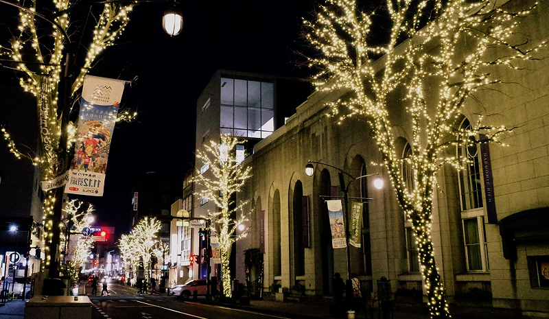大名町通りから千歳橋へ優しく温かな光を灯します。
